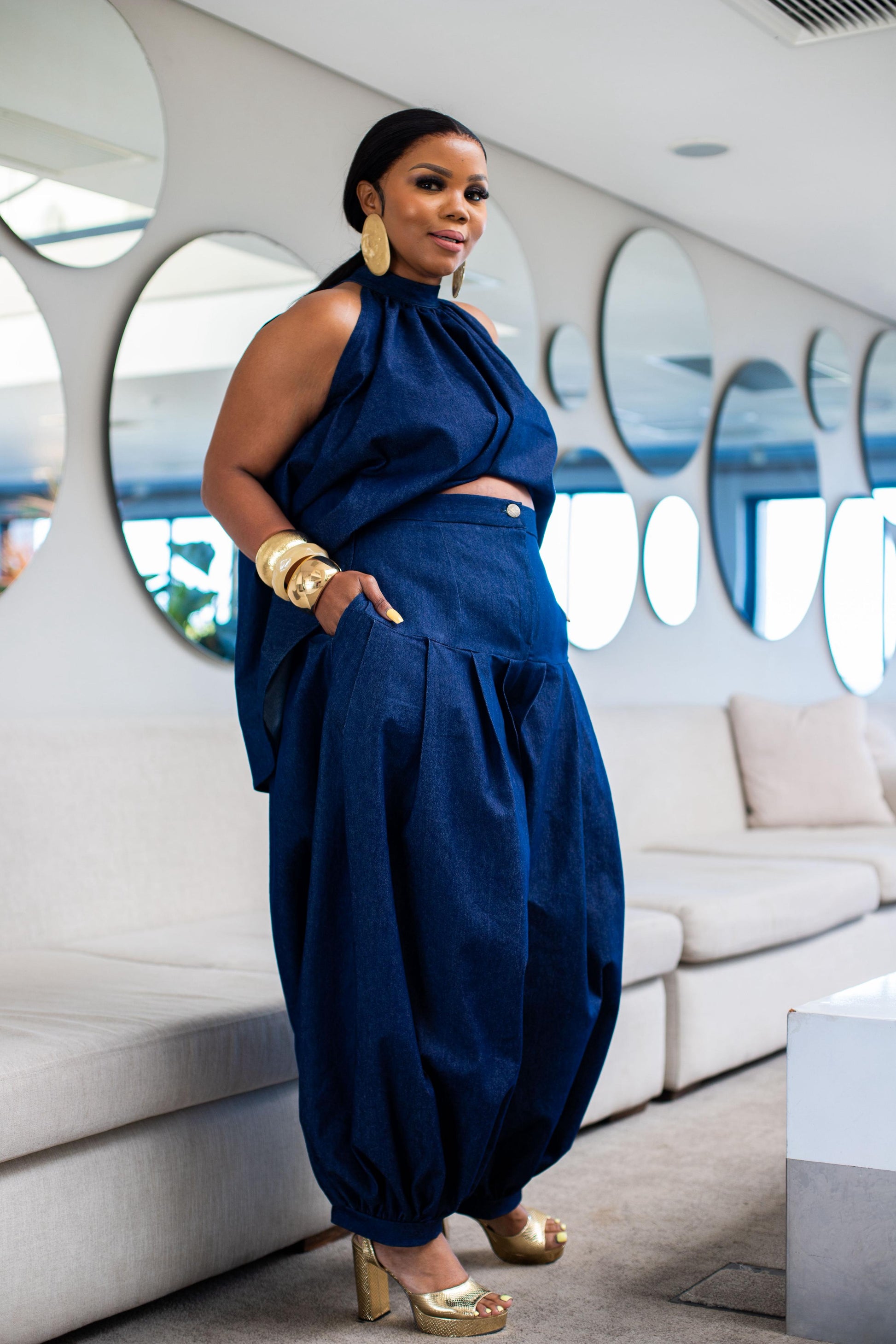 - Crafted from rich indigo denim for a bold, standout look