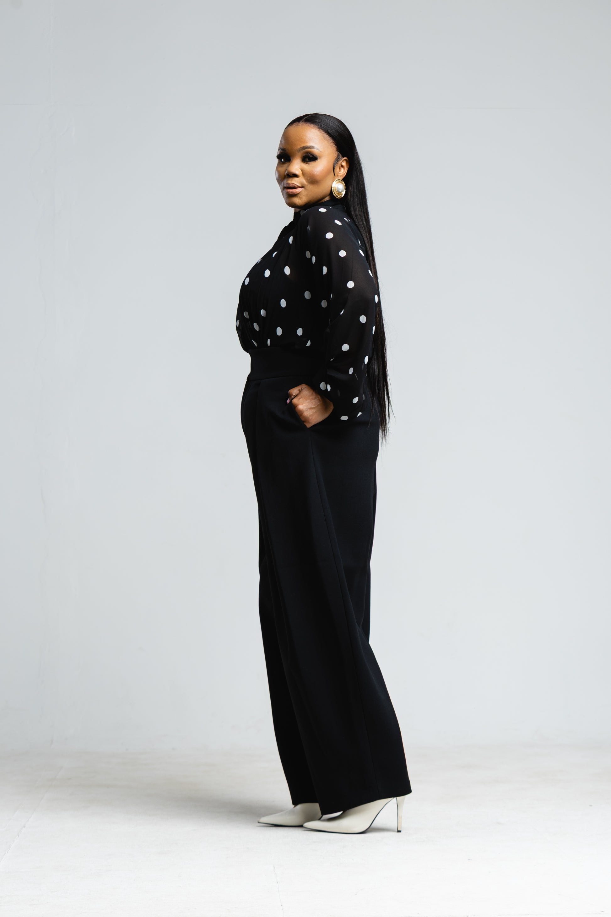 A sophisticated blouse that brings quiet drama, elegance, and effortless confidence to your wardrobe.